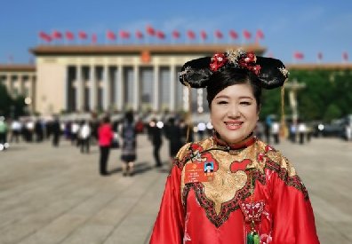孙艳玲参加全国两会,在人民大会堂前留影 黑龙江省文旅厅供图 全国人大代表、国家第...